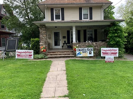 The image on the right illustrates the signage found on many lawns of graduates, congratulating the class of 2020.